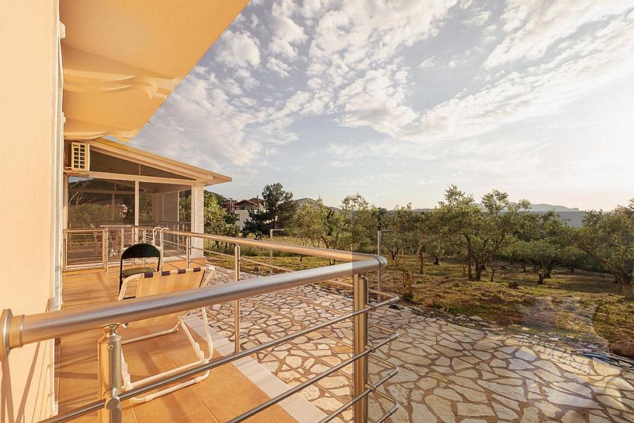 Luxury apartment for rent in Corfu, Aleimatades area, 120sqm, raised ground floor, which consists of 3 comfortable bedrooms, comfortable living room with fireplace, dining room, fully equipped kitchen with osmosis and dishwasher, 2 bathrooms with shower-cabin and washing machine each , air conditioners in all areas, screens, satellite TV, solar water heater. Additional facilities: cot and playpen, color intercom, automatic external lighting at night, installation of security cameras in the external surrounding area, closed bbq fully equipped, closed veranda with screens. The apartment is located in a two-story house built in an olive grove, has its own entrance and has 1 or 2 covered parking spaces.Energic Claas B